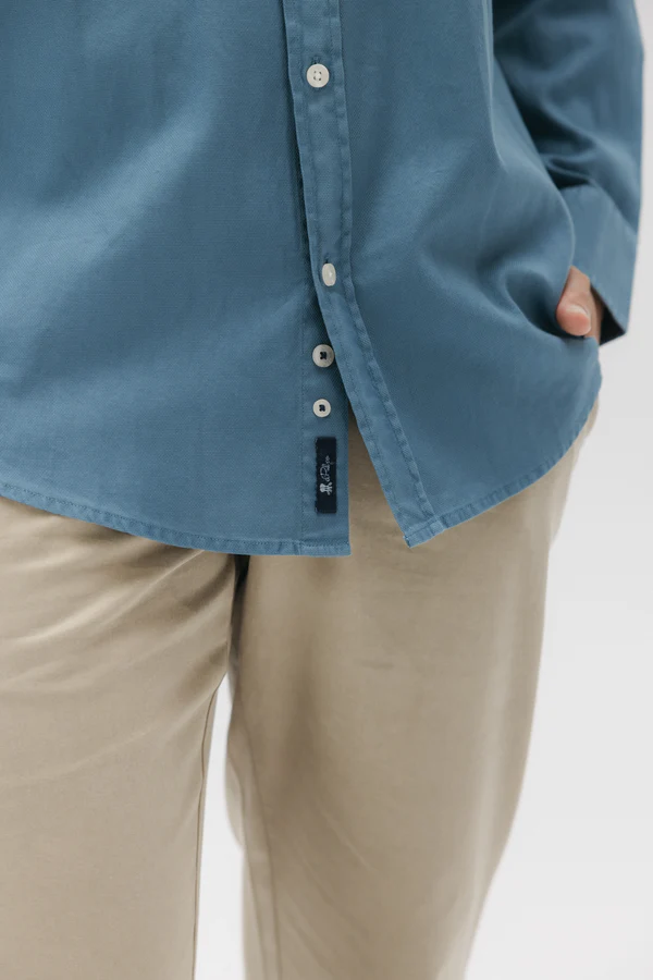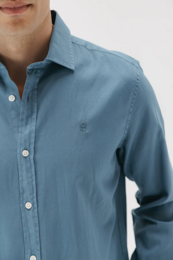La Camisa El Pulpo Garment Azul combina la esencia relajada del estilo mediterráneo con la calidad de los acabados más cuidados. Su tono azul lavado tipo garment dye aporta profundidad y textura al tejido, creando un look natural y versátil perfecto para cualquier ocasión.