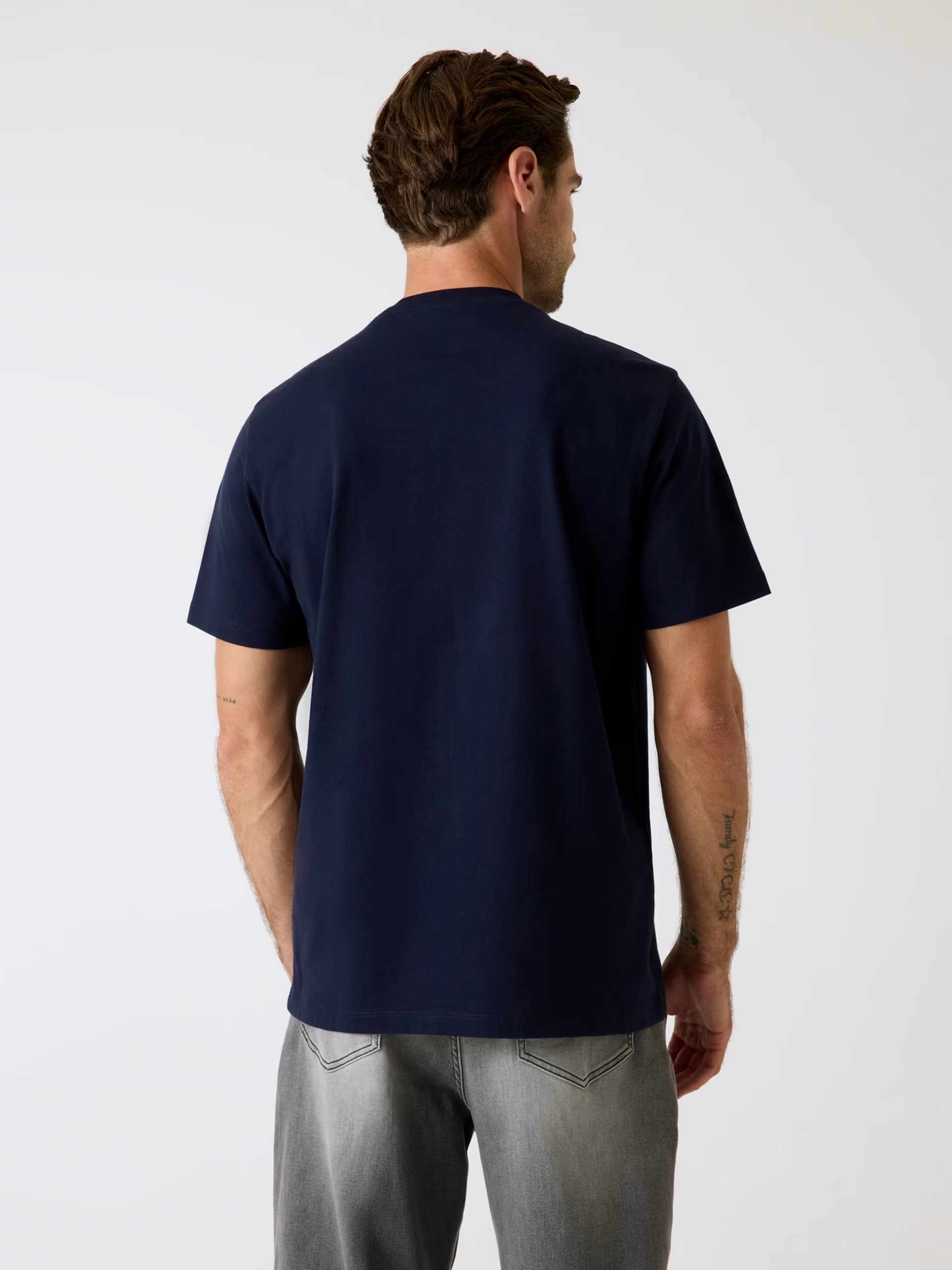 La camiseta Guess hombre azul es perfecta para combinar con vaqueros, chinos o pantalones deportivos, adaptándose fácilmente a diferentes estilos y ocasiones. Su tono azul marino profundo añade un aire sofisticado que no pasa de moda, convirtiéndola en un básico imprescindible en cualquier armario masculino.