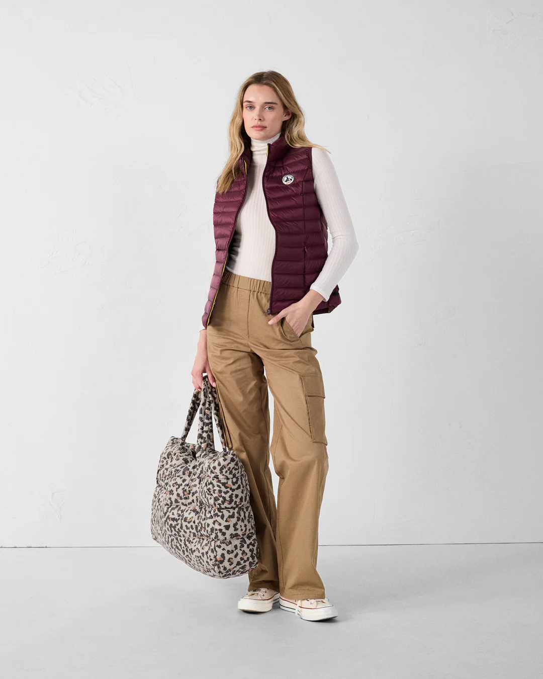 El chaleco Jott mujer granate se adapta perfectamente a la figura gracias a su corte entallado, aportando una silueta femenina y elegante. Su color granate profundo le da un toque sofisticado y versátil que combina tanto con prendas informales como con un look más urbano. Además, su acolchado ultraligero ofrece la calidez justa para entretiempo o para superponer bajo una chaqueta.