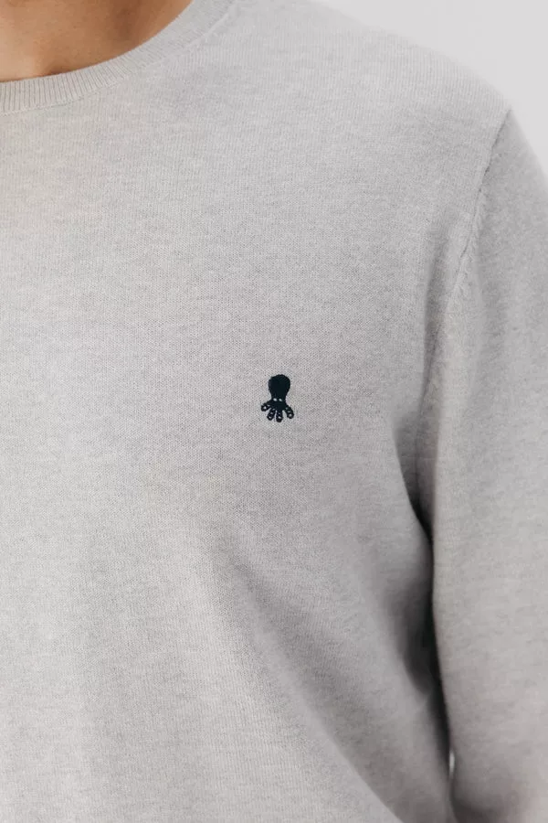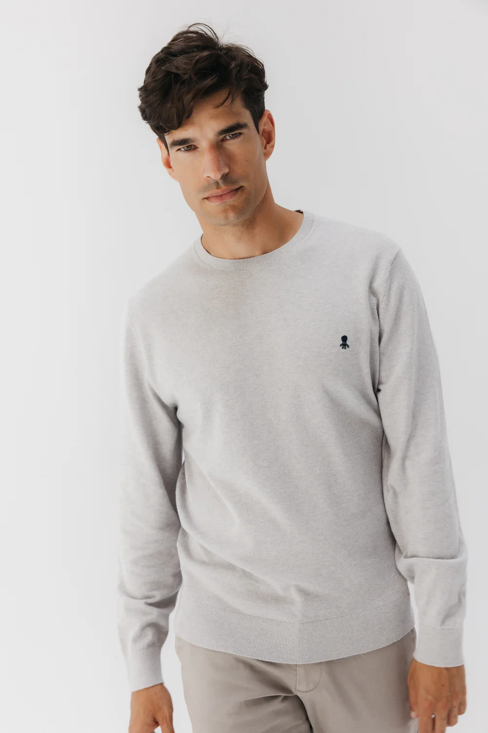 Su color gris claro es una apuesta segura por la neutralidad y la versatilidad: combina a la perfección con cualquier prenda, ya sean unos vaqueros, chinos beige o incluso pantalones más formales. El logo de El Pulpo bordado en azul marino en el pecho aporta un contraste sutil y un sello de identidad elegante.