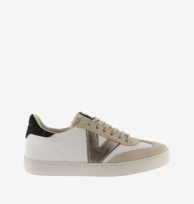 Este modelo incorpora la icónica “V” de Victoria en el lateral y un detalle en glitter negro en la parte trasera, que aporta un contraste moderno y distintivo. La referencia Victoria 1126222 ofrece una plantilla acolchada para mayor confort y una suela de goma resistente que garantiza durabilidad y buen agarre.